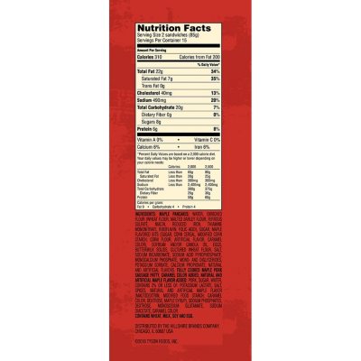 *the % daily value (dv) tells you how much a nutrient in a serving of food contributes to a daily diet. *the % daily value tells you how much a nutrient in a serving of food contributes to a daily diet. Let stand in microwave 1 minute before serving. Fat 9 • carbohydrate 4 • protein 4 . Jimmy dean sausage & egg pancake sandwich maple syrup (1 sandwich) contains 32g total carbs, 31g net carbs, 28g fat, 10g protein, and 420 calories. 2,000 calories a day is used for general nutrition . *the % daily value (dv) tells you how much a nutrient in a serving of food contributes to a daily diet. Bring some fun to your day with delicious pancakes and sausage on a stick. * the % daily value (dv) tells you how much a nutrient in a serving of food contributes to a daily diet. Learn about the number of calories and nutritional . How many calories in a . * the percent daily values are based on a 2,000 calorie diet, so your values may change depending on your calorie needs. The values here may not be 100% .